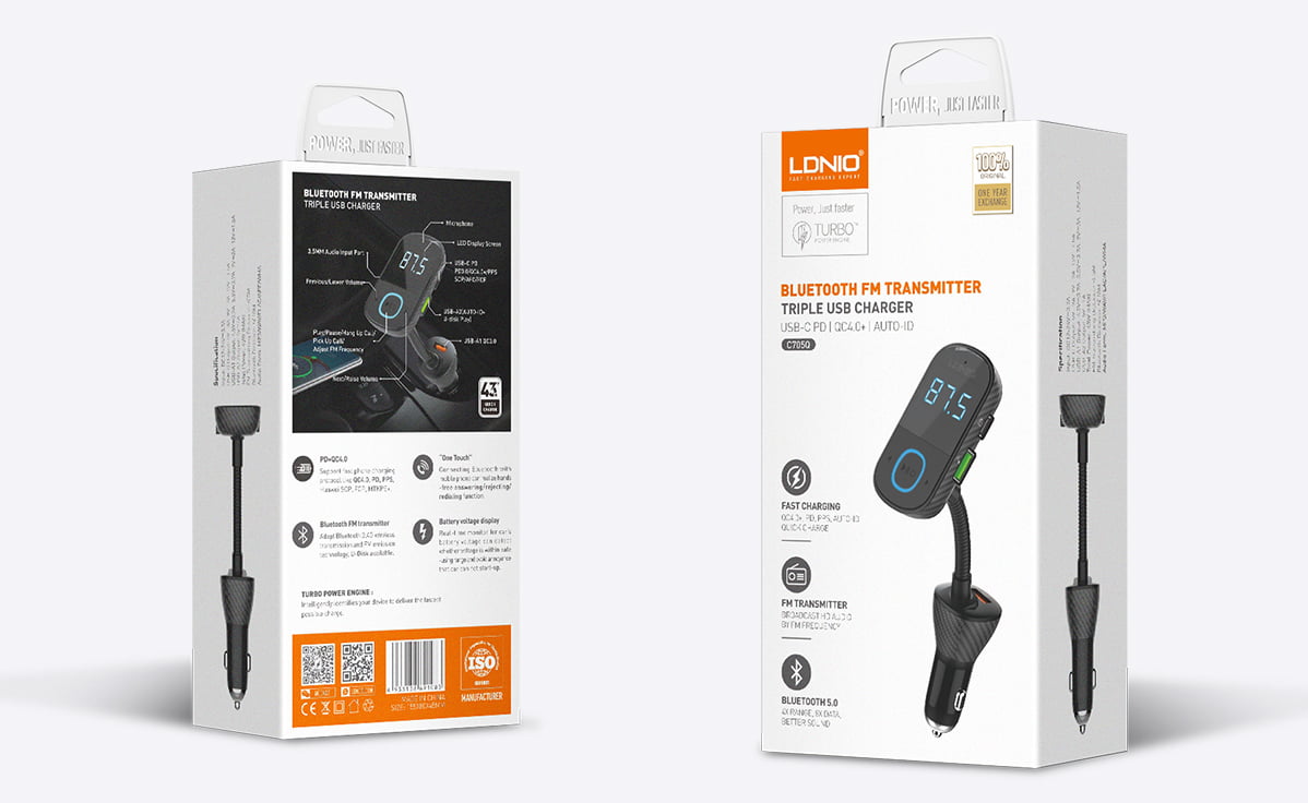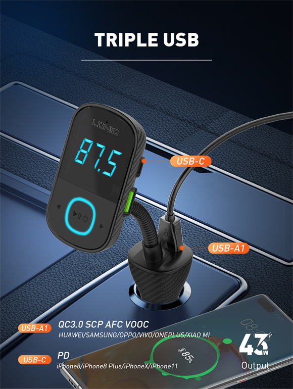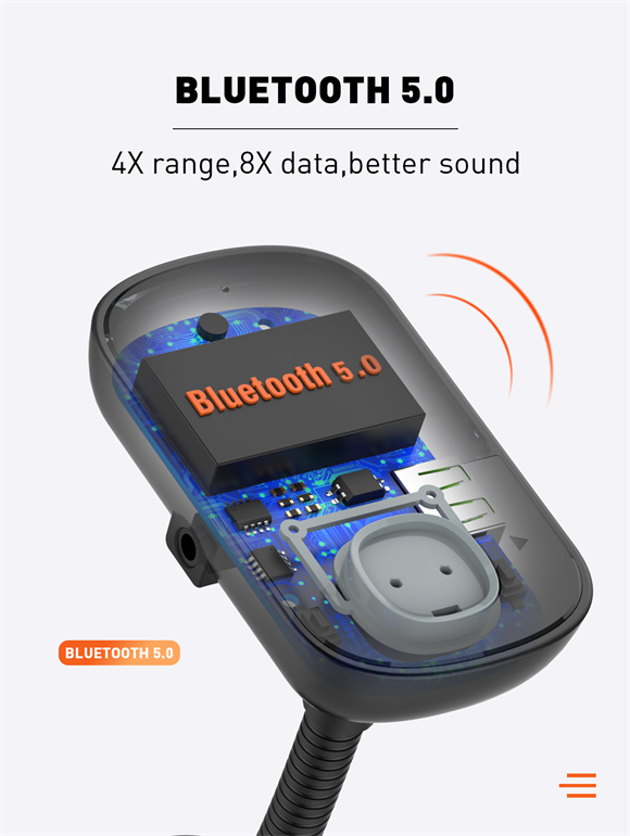 versión bt5.0, 4 veces la distancia de escucha, 8 veces la velocidad de transmisión de datos, transmisor fm fm, jugando calidad de sonido de alta definición a través de frecuencia fm.