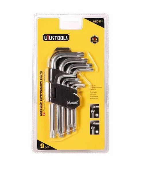 DEC901, está diseñado para las personas y profesionales que necesiten en su día a día un juego de llaves de tipo torx, para satisfacer todas sus necesidades. Ya que gracias a la variedad de este juego (Llaves desde T10 – T50) brinda versatilidad en ambientes de trabajo livianos y semiprofesionales. 9 Piezas Llaves tipo torx Ref: DEC901 Original Uyustools