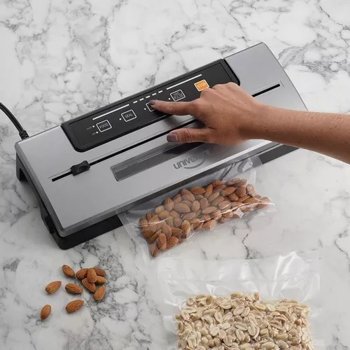 La Empacadora al Vacío para alimentos secos y húmedos es la herramienta ideal para conservar alimentos frescos por más tiempo. Diseñada tanto para uso doméstico como institucional, esta empacadora le permite sellar al vacío alimentos secos y húmedos de manera rápida y eficiente, asegurando una mayor durabilidad y frescura. Descubra más opciones en nuestra categoría de empacadoras al vacío. Comprando la empacadora al vacío para alimentos secos y húmedos obtendrás: (h2) Conservación Óptima: Manten tus alimentos frescos por más tiempo, evitando el desperdicio y ahorrando dinero. Versatilidad: Adecuada para alimentos secos y húmedos, perfecta para diferentes necesidades de almacenamiento. Seguridad y Facilidad de Uso: Protección de sobrecalentamiento y cortador incorporado para un uso seguro y cómodo. Eficiencia y Rapidez: Sella los alimentos en tan solo 6-12 segundos, garantizando una operación rápida y eficiente.