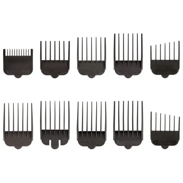 - Contiene 10 peines guía que funcionan con todas las cortadoras de cabello Wahl.