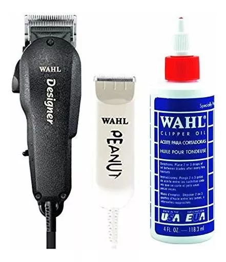 Combo de maquinas para corte de cabello profesionalmente, este combo cuenta con una máquina recortadora Designer, una maquina terminadora peanut, 6 peines guía (1-1/8 3mm, 2-1/4 6mm, 3-3/8 9mm, 4-1/2 13mm, 6-6/8 18 mm, 8-1” 25 mm), un cepillo para limpiar la maquina, un protector para las cuchillas, gotero con aceite y 4 peines guía más (1-1/8 3mm, 2-1/4 6mm, 3-3/8 9mm, 4-1/2 13mm)