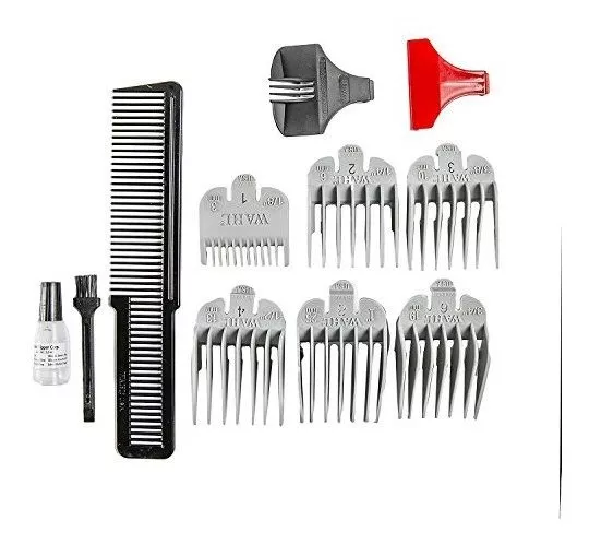 Para su comodidad, el All Star Combo (# 8331) viene con todos los accesorios necesarios. para usar. Incluye 6 peines de sujeción de clipper para Designer Clipper, 4 peines de fijación de maní, aceite, cepillo de limpieza, instrucciones, instrucciones de funcionamiento y protectores de cuchilla roja.