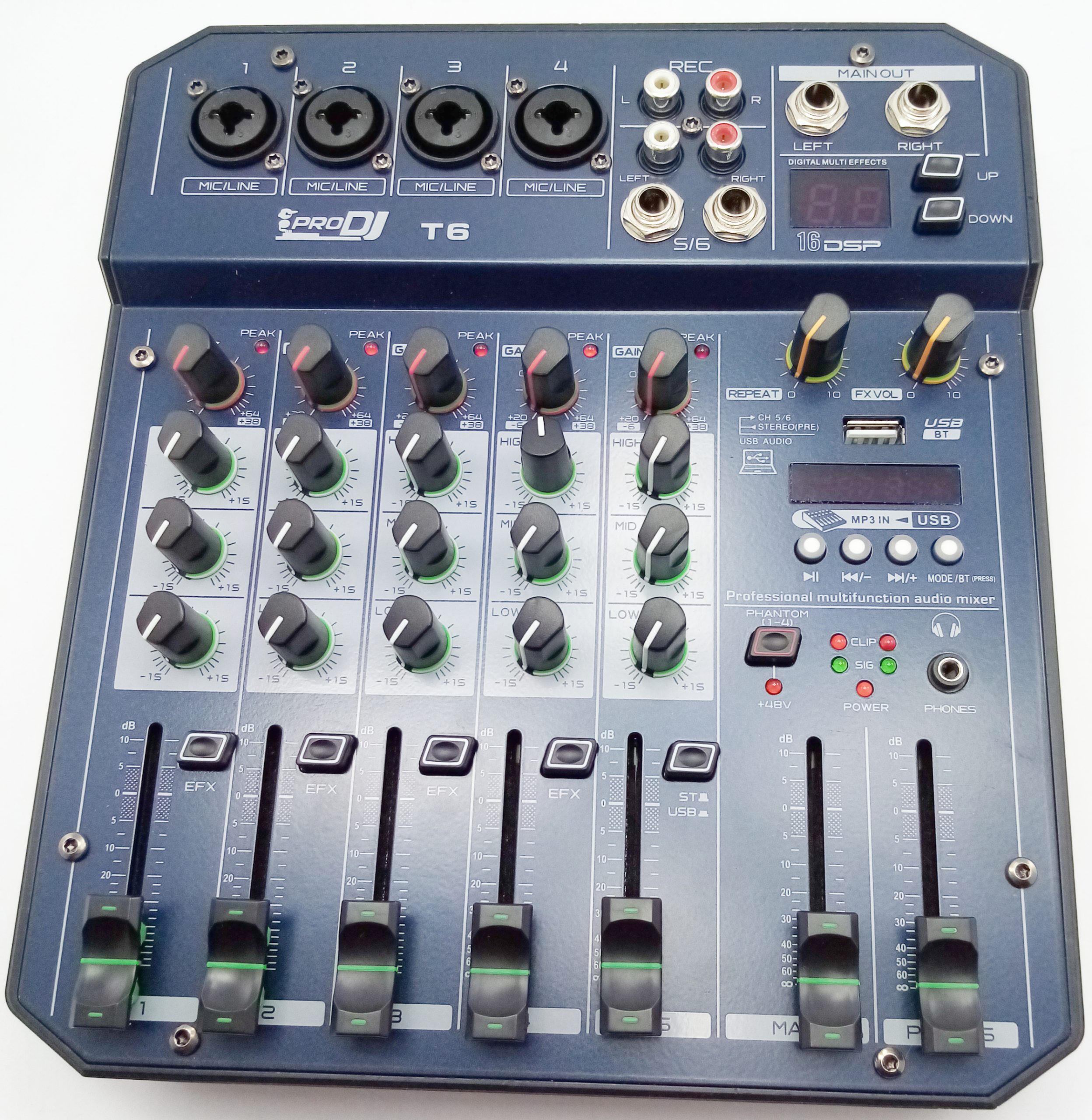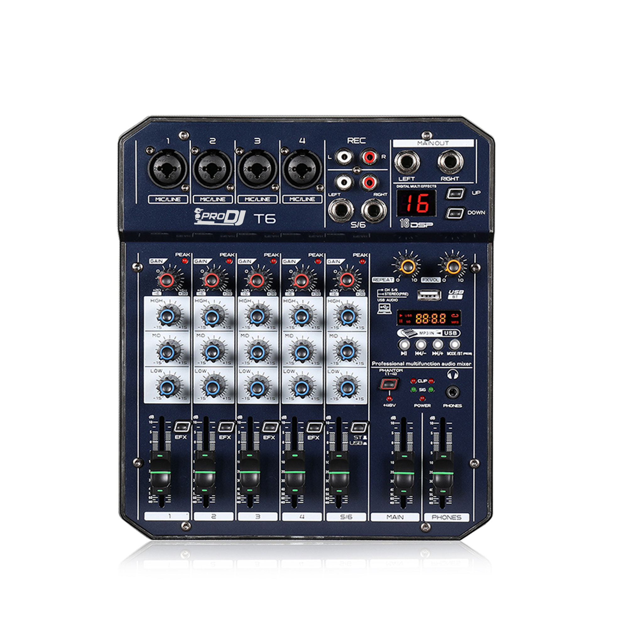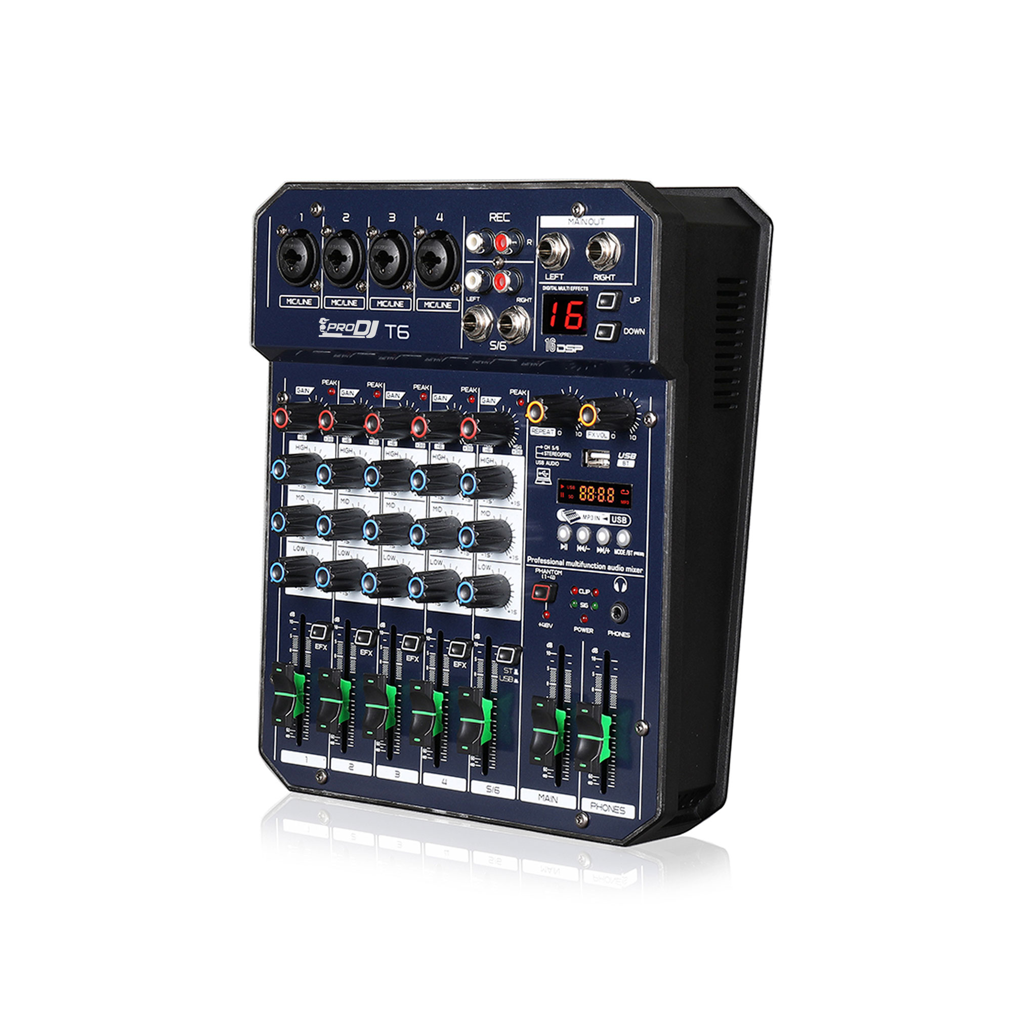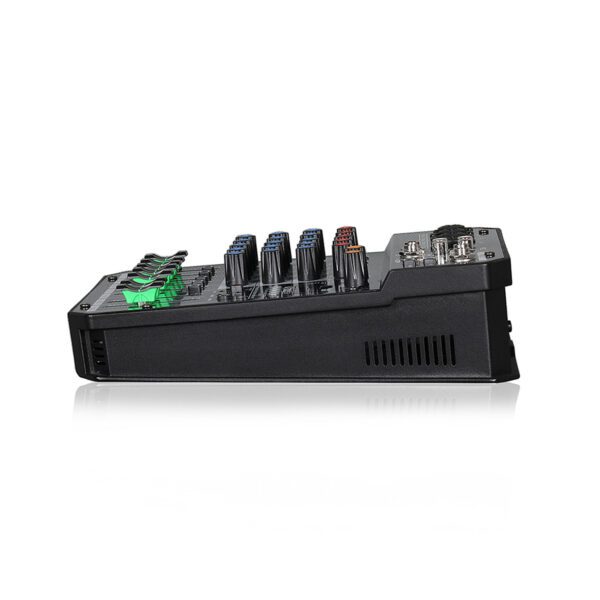 Esta es una consola mezcladora multifuncional de 4 canales con tarjeta de sonido. Puede satisfacer muchas demandas de los usuarios, como producción de música en casa, transmisión en vivo, Karaoke y otros actividades