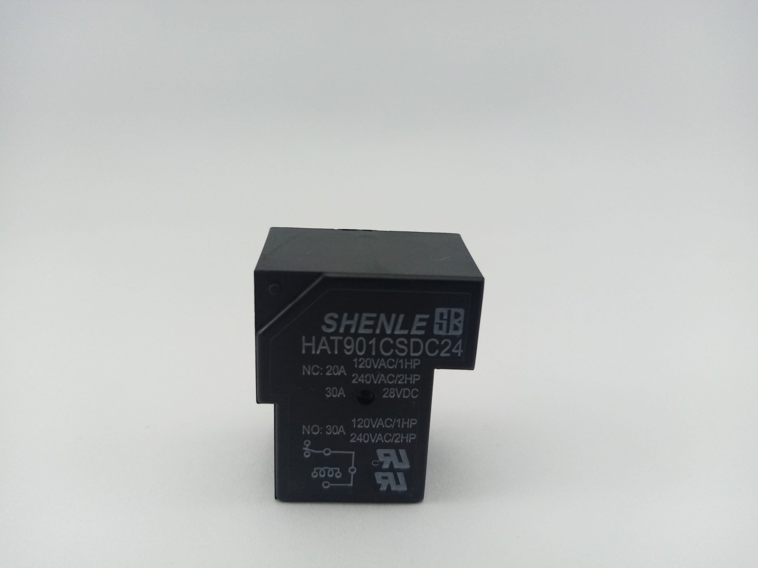 Relé para PCB modelo de 24 V 30A con contacto normalmente abierto y cerrado, tiene 6 pines, dos para la bobina, dos común, con dos contactos uno cerrado (NO) y otro abierto (NC)